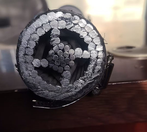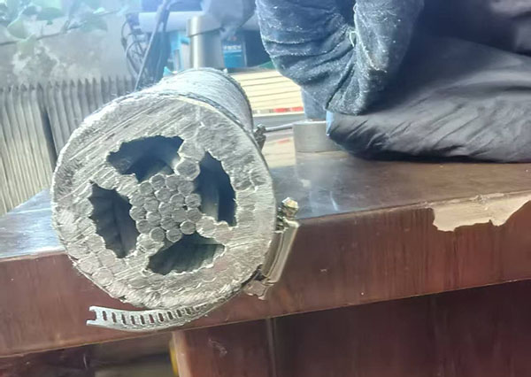 1.结构 结构:中心钢芯19根钢丝,铝层分四层(内层/次内层各4根支撑铝线,次外层27根、最外层33根铝线),导线外径51.0mm(疏绞工艺使实测外径略小于计算值)。通过分层疏绞实现扩径效果,兼顾导电性能与机械强度 2.基础材料标准 硬圆铝单线:符合《架空绞线用硬铝线》GB/T 17048,需满足抗拉强度≥120MPa、20℃电阻率<0.02801Q·mm2/m等要求。 镀锌钢丝:符合《架空绞线用镀锌钢线》GB/T 3428中G1A型号规定,抗拉强度≥1270MPa,镀锌层厚度≥86μm。 3.行业专项标准 扩径型钢芯铝绞线通用要求:遵循《扩径型钢芯铝绞线》NB/T 42062-2015,明确绞合结构、节径比、表面质量、拉断力等核心指标 绞合要求:同心式绞合,相邻层纹向相反,最外层为右向;疏绞层单线间隔均匀、无紧贴,切断后线端可徒手复位。 节径比:钢芯层 14~26,铝疏绞层 5~10,铝次外层10~14,铝外层10~14,且任一绞层节径比不得大于紧邻内层(疏绞层除外)。 力学性能:综合拉断力≥350kN,铝单线接头强度≥130MPa 4.验收与检验标准 1.尺寸偏差:成品外径偏差≤土1%(直径≥10mm时),钢芯/铝单线直径偏差≤±0.01mm,单位长度重量偏差≤土2%(标称4.061kg/m)。 2.表面质量:无毛刺、跳线、擦伤、松股;铝单线接头内层≤2个,次内层≤3个,接头间距≥15m。 3.试验要求:型式试验需覆盖拉断力、直流电阻、蠕变、过滑轮等项目;抽样试验需全检原料单线性能、绞合结构尺寸。